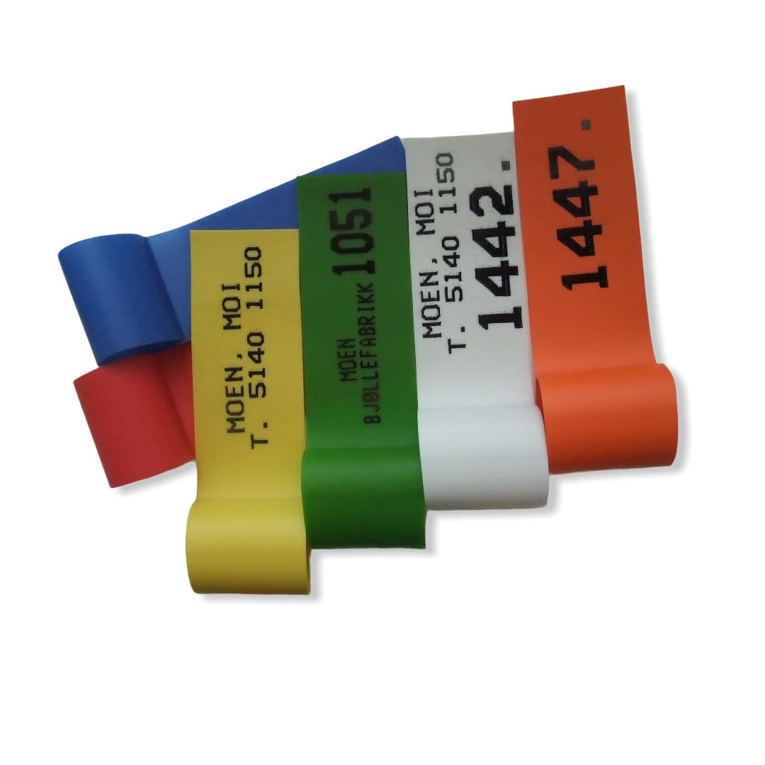 Enkel fargemerking som passer på alle typer klaver og reimer. Passer også utmerket til id merking av feks jakthund og gjeterhund, og til merking av teiner, feks hummerteiner.